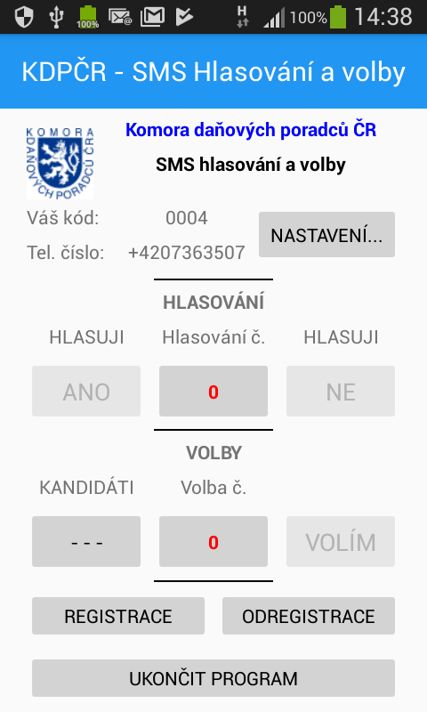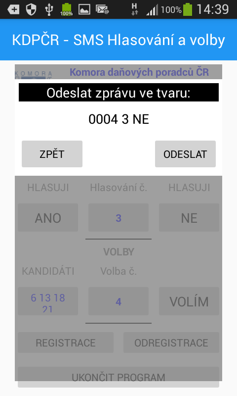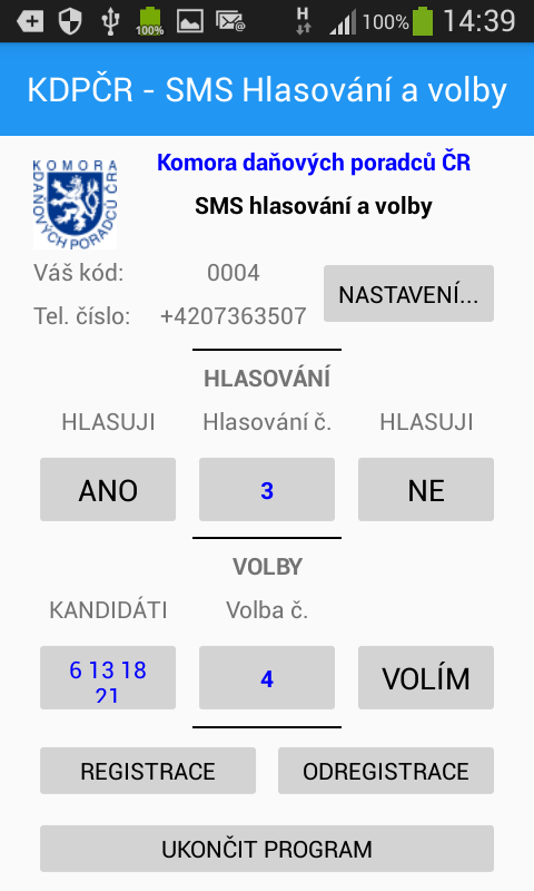 - C - text ANO nebo NE (podle toho, zda je stisknuto tlačítko s daným textem v sekci HLASOVÁNÍ)