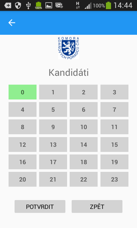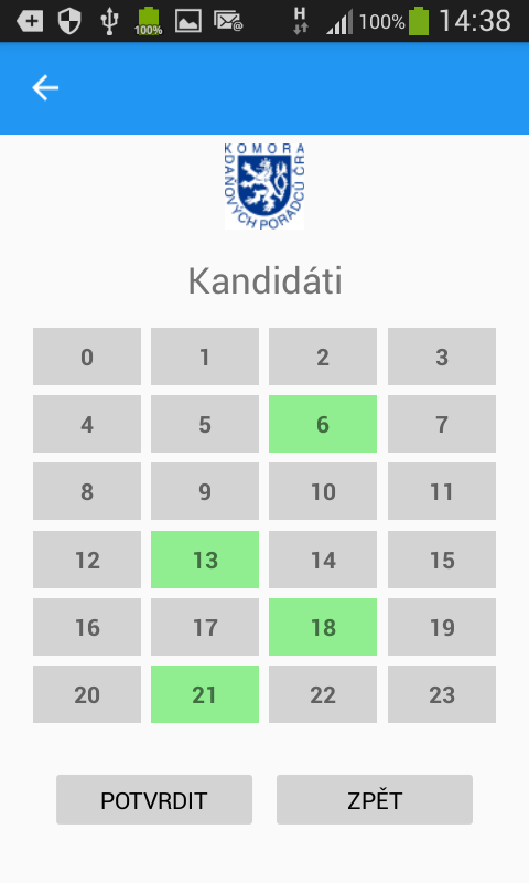 - C - čísla kandidátů (načtené tlačítkem v sekci VOLBY pod textem Kandidáti)
