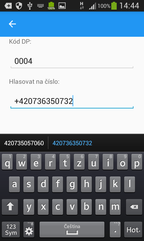 - nastavení telefonního čísla, na které se má odesílat daná sms (v sekci Nastavení)
